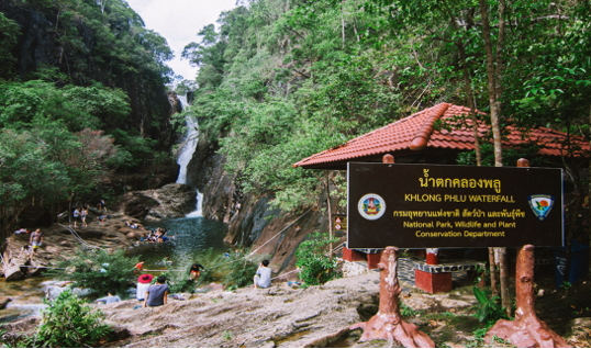 นอกจากนี้สภาพโดยทั่วไปยังปกคลุมไปด้วยป่าดิบซึ่งเป็นป่าดั้งเดิมของพื้นที่ มีสภาพร่มรื่น อากาศเย็นสบาย เล่าต่อๆ กันมาว่า น้ำตกคลองพลู แต่เดิมน่าจะเรียกว่า "คลองภู" เพราะมาจากชื่อ "ภูผาเมฆสวรรค์" ซึ่งเป็นชื่อของยอดเขาในบริเวณนี้ และยังกล่าวกันอีกว่า พระบาทสมเด็จพระจุลจอมเกล้าเจ้าอยู่หัวก็ทรงเคยเสด็จประพาสถึง 2 ครั้ง
